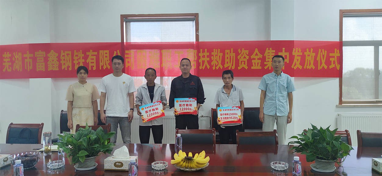 8月4日上午,繁昌區(qū)總工會(huì)一行在新港鎮(zhèn)總工會(huì)相關(guān)負(fù)責(zé)人的陪同下到蕪湖市富鑫鋼鐵有限公司舉行困難職工幫扶救助金發(fā)放...